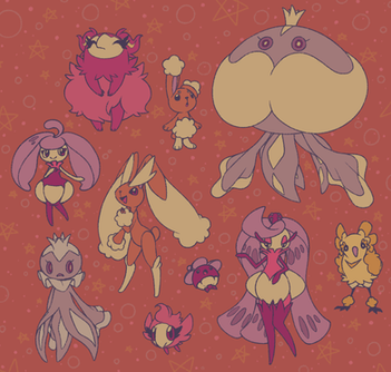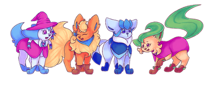 2 of them are not exactly main (vaporeon and espeon), but they are good friends of the main characters, so I included them aswell (this picture works as colour pallet for me, so that's also why).