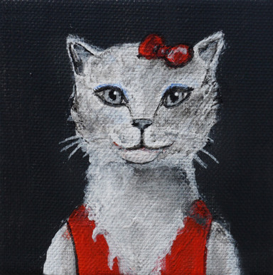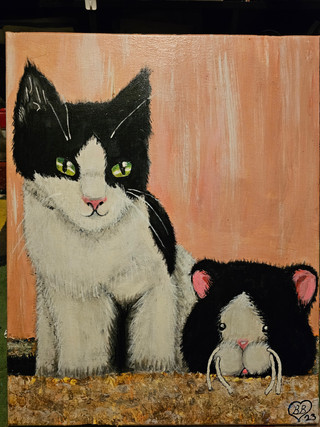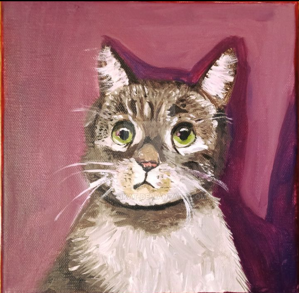 hehe, thank you! It is me, my boyfriend and our cat Pixie. I like your interpretation the idea was to paint the cat big, to demonstrate a feeling when a cat is on the bad with us, it's like we can't move or change position, almost like she's huge and heavy