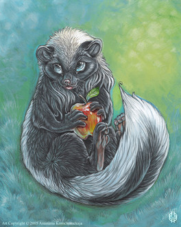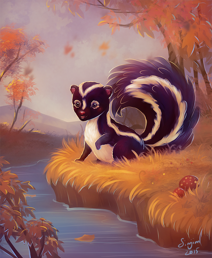 #colorful #dance #evening #field #flowers #fluffy #jumping #magical #rays #roots #skunk #spotted #stripped #sun #tails