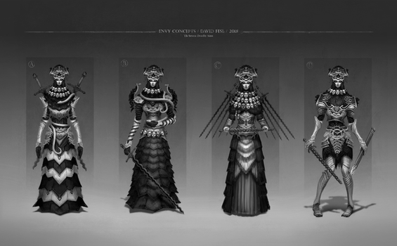 My two personal favorites (going from left to right), the third one on the top row and the first two on the bottom row. However they all look very awesome and I could even see them all as being a Bene Gesserit in some form or another. Hell they could even work as the priestesses or witches of another Sci-Fi or Fantasy story.