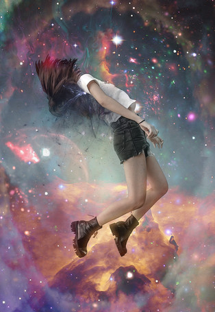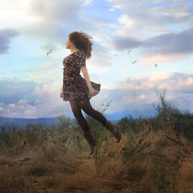 #atmosphere #conceptual #dreamy #emotional #falling #female #flying #forest #girl #hair #heaven #leaves #long #model #sky #sparks #woman #clouds #manipulation #photomanipulation #photoshop