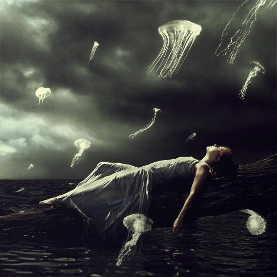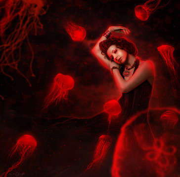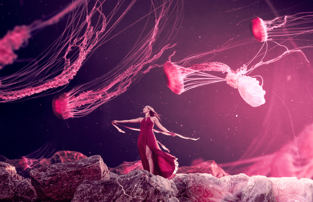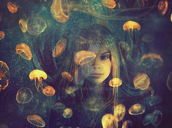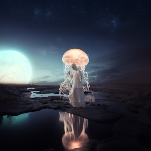 #arms #blue #dark #dress #female #jellyfish #large #model #moon #standing #tall #twigs #woman #manip #photomanipulation #surreal