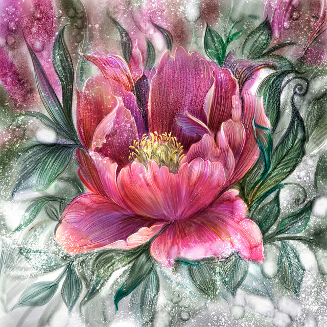 This one has been on the back-burner for ages. I kept doing a layer or two in between other projects.Done in Photoshop CS3 using the pen tool, this has approx 500 layers in this piece and was inspired by an acrylic painting I did in 2007 of the same flower, which had a gold background.