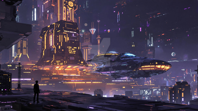 Evening sci-fi megacity paintingRelated content