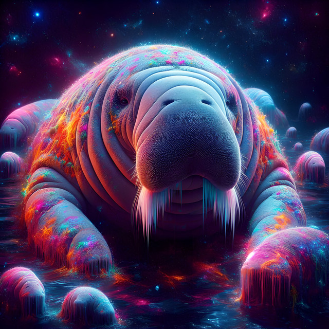 Asked my friend David what to draw, he said a manatee swimming in space. I thought that I might aswell do it, here is the result!Related content