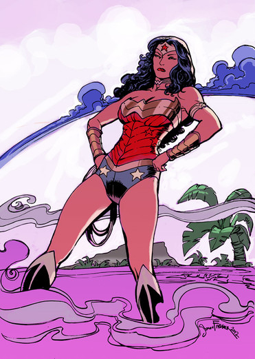 Nice job with Starfire. I like how you have her hair streches all the way to the tower. Do you draw requests?