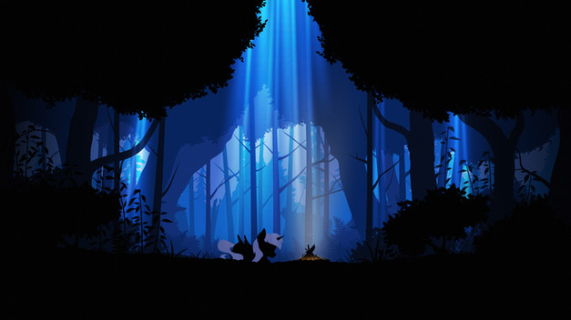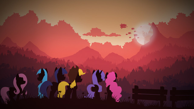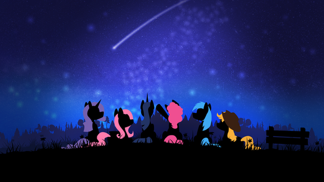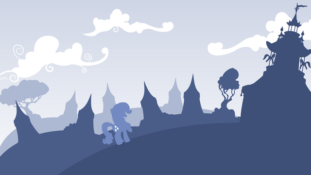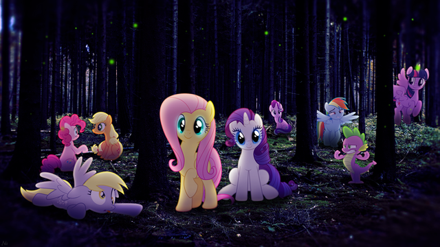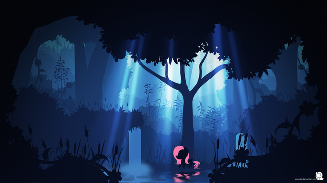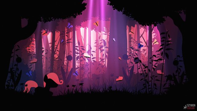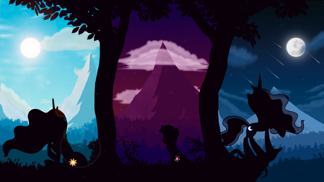 Oh, spirit pony... pretty. I like the layers of silhouetted trees that gradually became more faded and the soft lighting, it really looks like a forest by moonlight. The vines look a bit like telephone wires though.