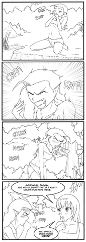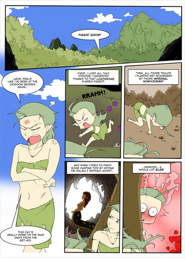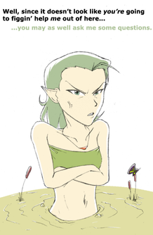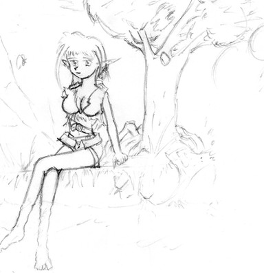 I doubt it. Tarynn lives on the border of the Great Rocky Fields in a small cave set slightly above a floodplain, in the forest behind Milkadis Temple. This is one of her many gripe spots, where she comes to moan. No wonder the tree's diedI would so ink and colour this if I weren't convinced I'd ruin it!