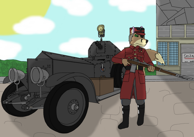 #military #militaryuniform #furry #anthro #afv #armoredcar #fantasy #male #redsquirrel #soldier #squirrel #uniform #armoredfightingvehicle #veverkan