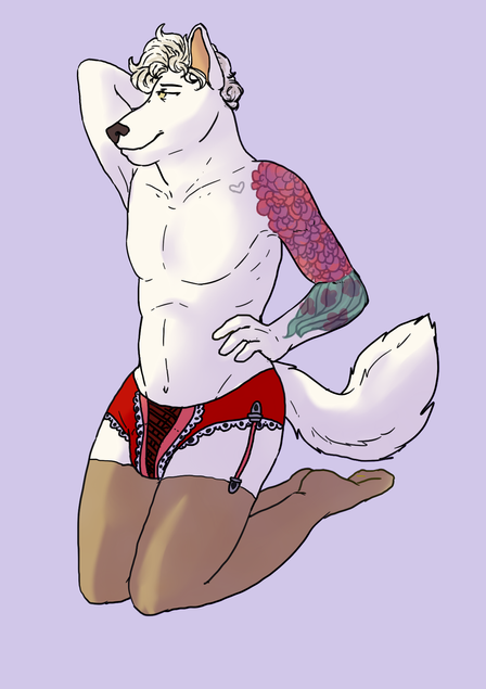Return of the jackal, this time trading his briefs for something a little more frilly because sometimes a guy just likes to feel pretty.Besides, more cute guys in lingerie is always a good thing.