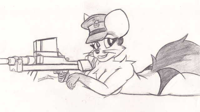 #anthro #cat #feline #female #firearm #furry #gun #opossum #possum #rifle #ragdollcat #livingplush #animate_inanimate