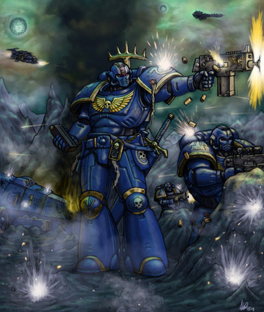 Great detail on the Ultramarines and the terrain/background. (taking notice to the concrete beams on the ground)