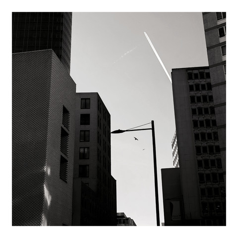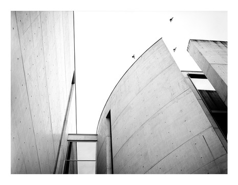 Great geometry! I love the shapes the light and shadows make... and you got a bird in there too!