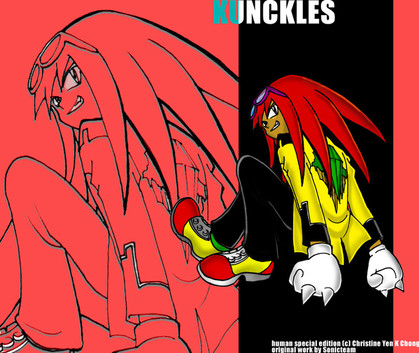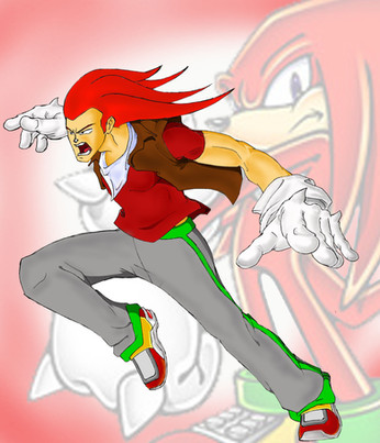 Woah you really got Knuckles' look correct here, now I could picture this being his human form ! I like how you made the u-shaped marking on his chest a necklace as a human.