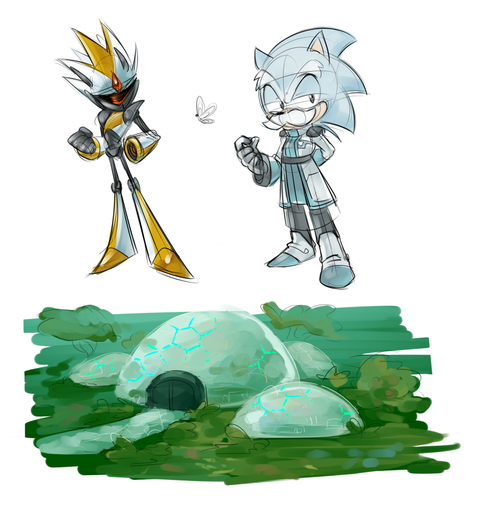 Your interpretation of Silver works, cuz I've always thought of him as an adorkable hero to begin with. He has responsibilities, and he tries to accomplish them and be a hero like the others like Sonic or Shadow, but his inexperience and naivete makes him look dorky. And because he has telekinesis, ya know, moving stuff with the mind, he's always come off as geek or nerd to me. The glasses, as many others have said, not only make a great substitute for the black around his eyes, but also add to his adorkableness, especially coupled with the retrofuturistic suit.