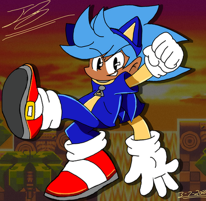 Humanized Sonic! He was actually one of the first ones I designed out of the whole cast.Besides the robot characters, I try to make my humanized versions a bit more natural looking, instead of having really crazy anime hair and fantasy outfits. My goal was to make human versions that would invoke the same kind of feelings and reactions from the other characters and audience as their mobian counterparts do. Basically, as if I had to retell all of the Archie Sonic history, but with humans instead of mobians. I'm avoiding the typical gijinka look of KPOP boy with blue emo hair. Personally, that's just not my bag, and I've seen it done too many times to do it myself. Cool beans if that's what you like, it's just not for me.