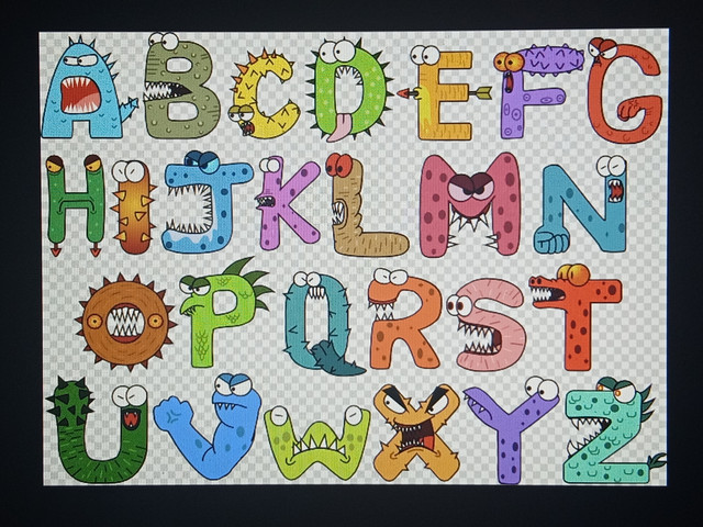I finished inking my Monster fonts for art class. Now I have to design a cereal box to go with the letters.My favorite letter is "P". It looked soooooo cute before I colored it in. Q was based off Marvin, S and G were based off slimy (oscar's pet worm), T was based off beaker, and O was the based off the manamana things.