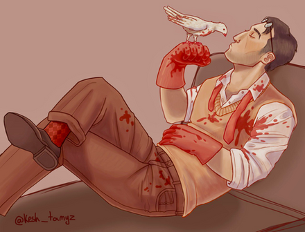 Well)) This is kind of unrequited love. Spy loves Medic, but doc rejects the advances. Fallen petals are metaphorical here. Bullet hole in the center is related to the plot of that fic