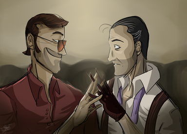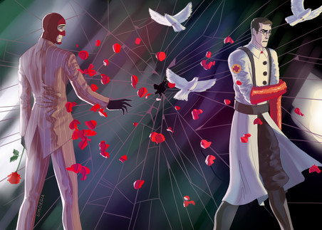Just my headcanon about Medic, who experimenting with Spy, holding him in a huge aquarium, and Sniper, lovin him and helping to escape