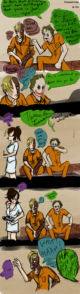 Read right-to-left.I've been playing Batmna: Arkham Asylum non-stop for two days now as I am stranded on my couch. I am very much in a DC/Batman mood.