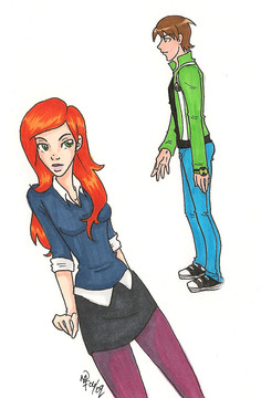 Ahhhh fanfics fluff oneshots are fun to take part in....but even more fun is drawing the characters.His names Big Al......he's not Ben......its glorious...mentally unstable Big Chill alien+ adorable human red head equals good awkward times!