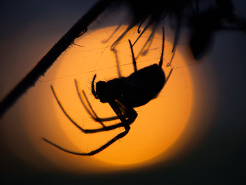 Sun peering through the trees on a foggy morning, edited to make it look spookier.Related content