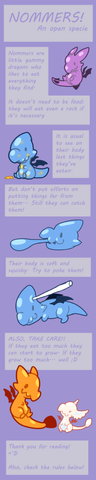 Each description must list: Method obtained, name, belly type, traits, and species, pets. each entry should have comment links as proof