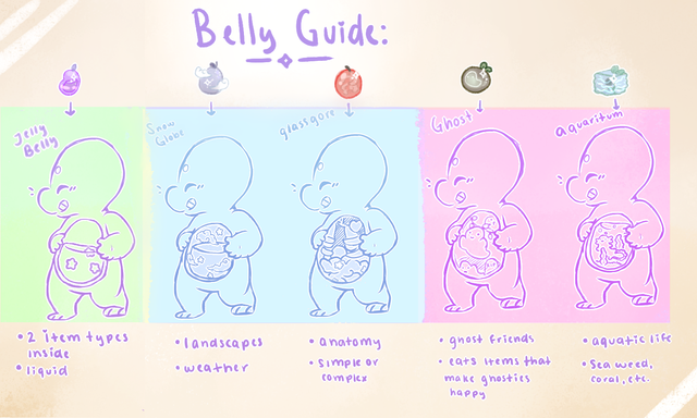 Jelly bellies eat berries to gain traits, species, and decides what goes in their magical bellies!