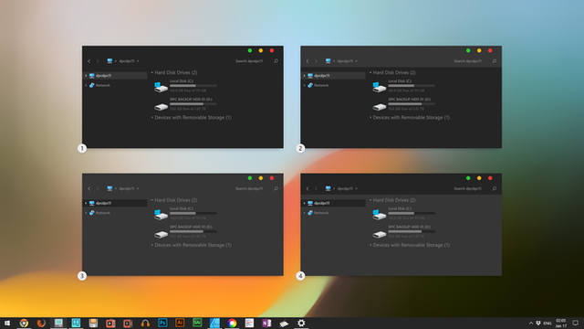 *Middle : Dark mode tabs mode but system is still on light (perfect for themes that use dark explorer frames but a white file explorer)