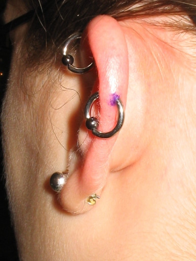 a three-stripe tattoo on my left ear (one for each cat), after its second session.Related content