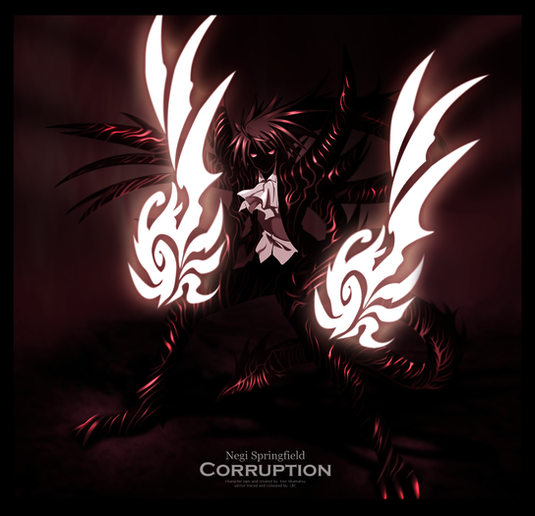 aww negi negi turned all dark and creepy emo boy, yay finally hes not the stupid naive boy wanting to be just like his dad, hooray for dark character growth and by the way great lighting and the tone goes well with everything maybe the light in the hand should be less translucent and i think a darker toning would be better but thats only my pinion