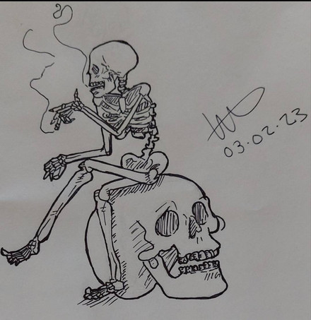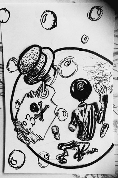 pen/ink on looseleaf paper.