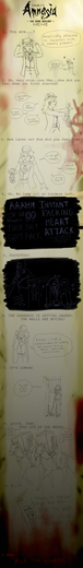 I finally drew a grunt (#3 and #5) and it was actually fun drawing him. By the way, in #3, when being chased by a grunt or a brute, you can sometimes run into a bedroom and sit on the canopy until they go away. Sometimes that plan doesn't work[link] Oswald's throwing a tinderbox at him, btw. In 5, the same grunt comes back for revenge D8