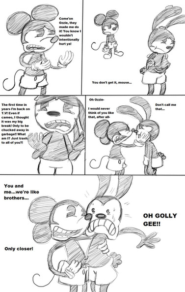 Page 3Screw perspective! You're a difficult skill to master. Maybe I should work on that for the next page instead of perfecting Mickey's face. I'm so glad I chose to do this in black and white, you have no idea how hard it would be for me to try and upload a page almost daily if I went full on colors and shading.