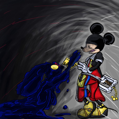 After telling Mickey why he teamed up with the organization, Oswald is even more willing to fight him. And Mickey....doesn't want to fight. If he fought with Oswald, then the rabbit won't know when to stop, and if Mickey wins, then he may never see his brother again. He feels pity for his heartless brother, but he can't afford to lose.The king is troubled with decisions, but only one can save them both.