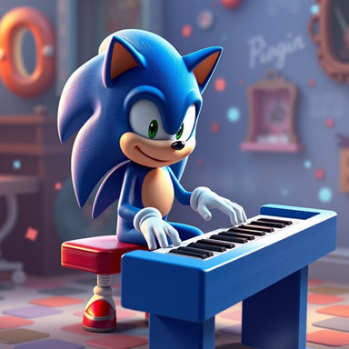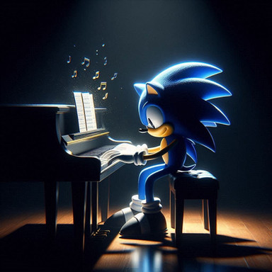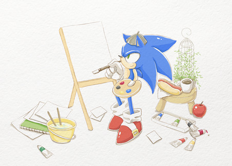A gift painted for a friend's birthday. He loves Sonic and plays piano like a frickin' piano god so I decided Sonic playing one of the most difficult piano concertos ever composed was a fitting giftI went for a purposefully more 'arty', unpolished look and it turned out really well on the print