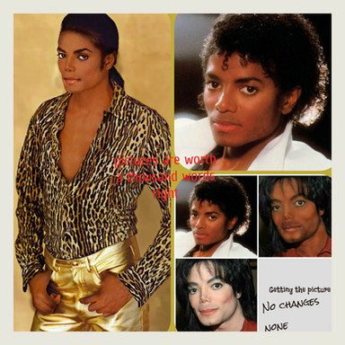 This is a Michael Jackson picture that I made, supporting the King of Pop. What picture is directed towards, is the false information about Michael's appearance.Related content