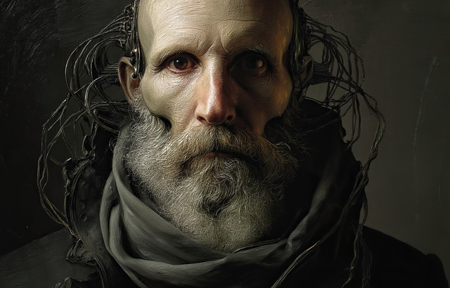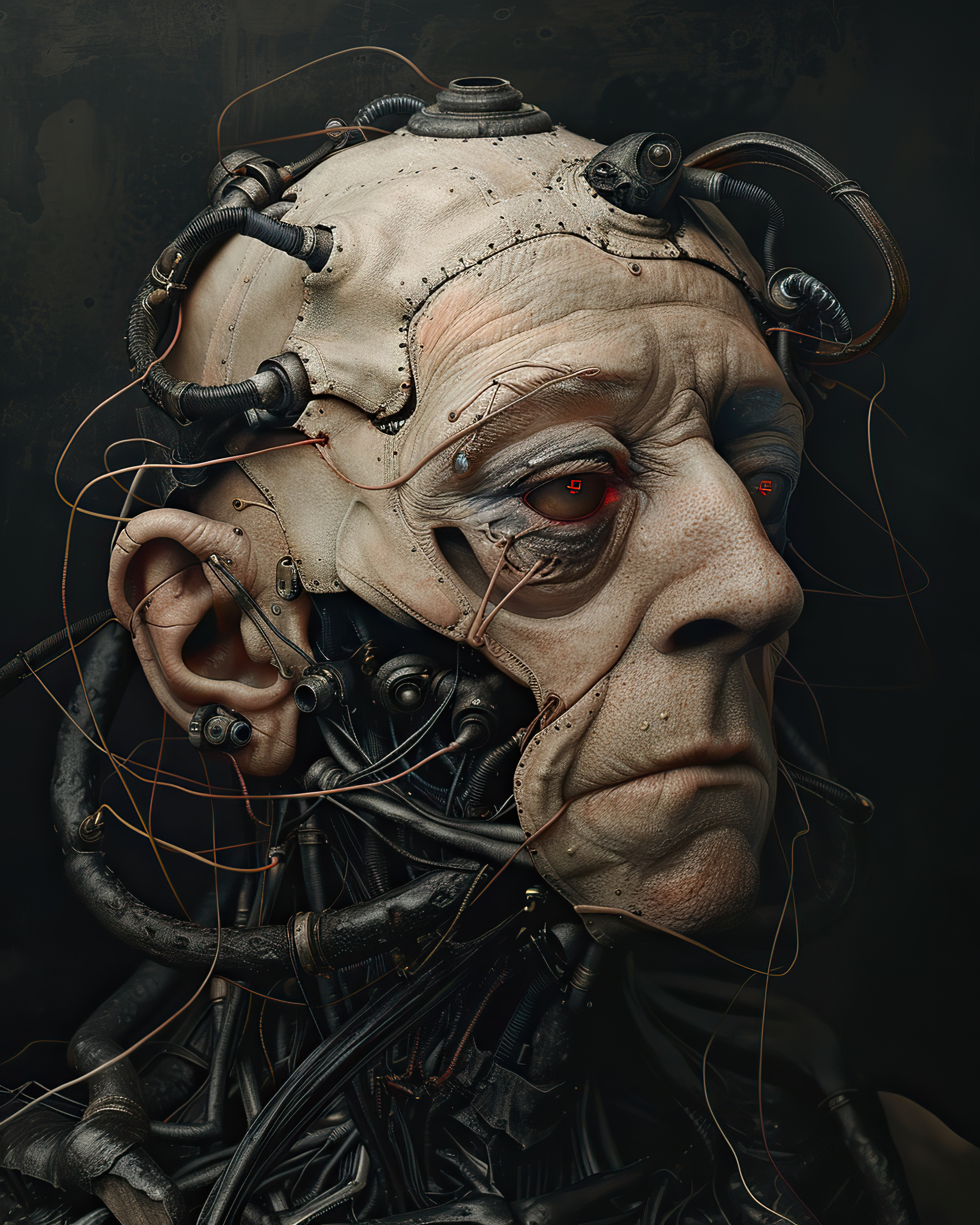 #portrait #scifi #digitalart #cyberpunk #cybernetic #dystopian #elderly #emotional #future #implant #machine #memory #nostalgic #reflection #reflective #soldier #sorrow #technology #trapped #veteran #war #warrior #aiart #old #aiartworks