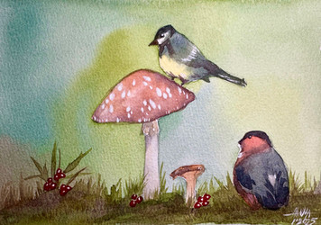 #bird #botanical #garden #mixedmedia #pencil #pencildrawing #robin #snail #watercolor #botanicaldrawing #watercolorpainting