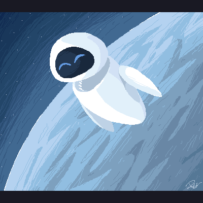 This is what I have completed for now, but I'm re-doing a new one. Changing EVE's pose (as well as WALL-E's). On top of that, I think I'll stop the 1px Pencil bit for now. At least, cause I want to try and do a detailed shot of both of them, and because this is one of my favourite scenes in the whole movie, I feel I should fix it a lot and do a better job.