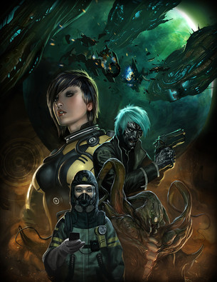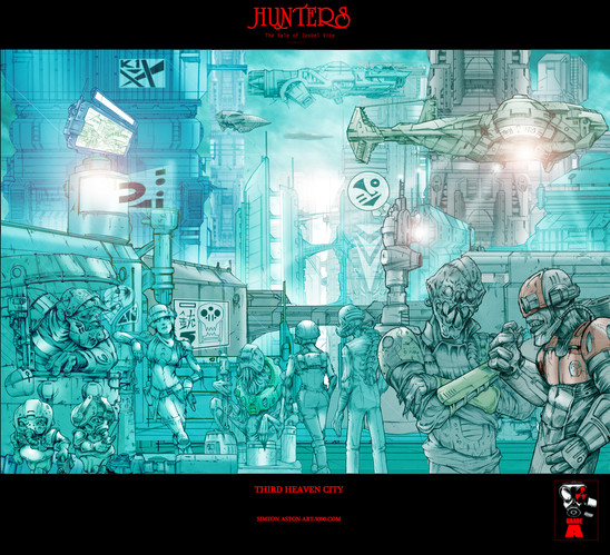 A street scene in the cold blue smog filled city of Tuaoni.Poster art for 'Metal Made Flesh' novella.Related content
