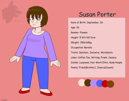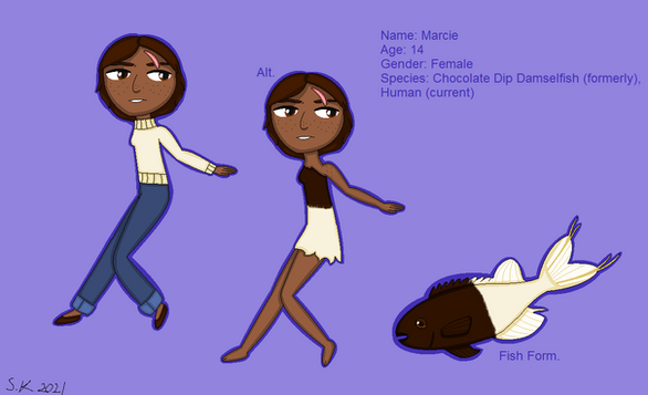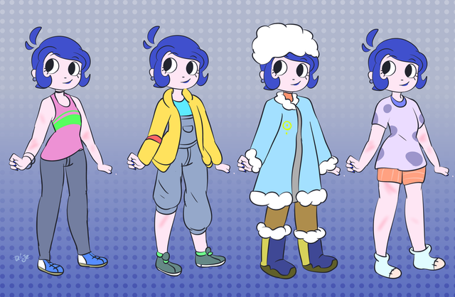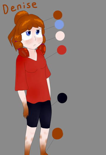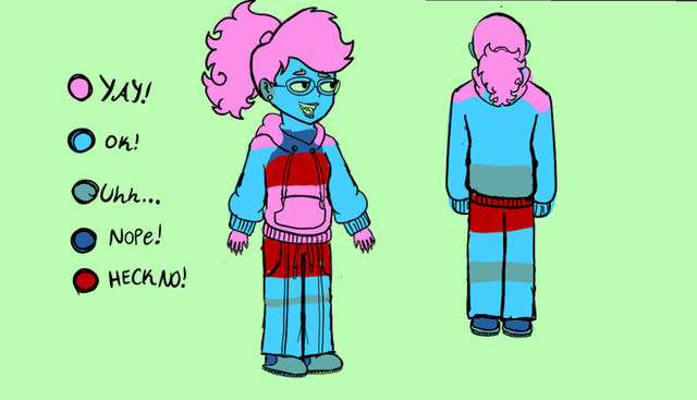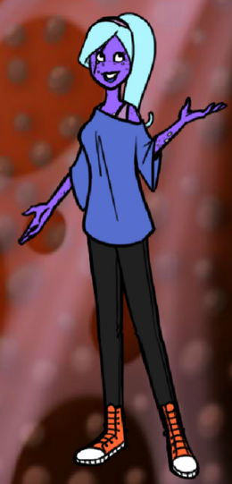 Denise is a humanoid alien, the most notable feature of her species is the crab like claws which hang from her hair. She's the self proclaimed captain of the ship these characters inhabit. She'll take time to relax occasionally but she's really passionate about her work, and gets incredibly irritated when someone goofs something up (So not on greatest terms with Vara and Lorre). She has a terrible temper but under her harsh tone she's a huge dork. In fact the only reason she wants so much work done is probably so she can go admire the space around the ship.Update- She's wearing a tracksuit now, that is way too big for her. Under the tracksuit there's swimsuit. She must have gotten her fashion tastes from mediocre anime. I made these changes because I thought the t-shirt was pretty boring and I think this reflects her character a bit more (alsoitwillbeprettyfuntoinflateamIright)