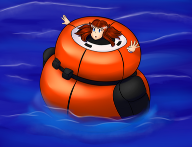 Here's another inflatable suit idea that I was suggested. Biggest problem I had with this drawing was the location for the pool. I chose the Ship (which I should really give a proper name sometime), I suppose Denise would have one on board because ya'know, crabs.