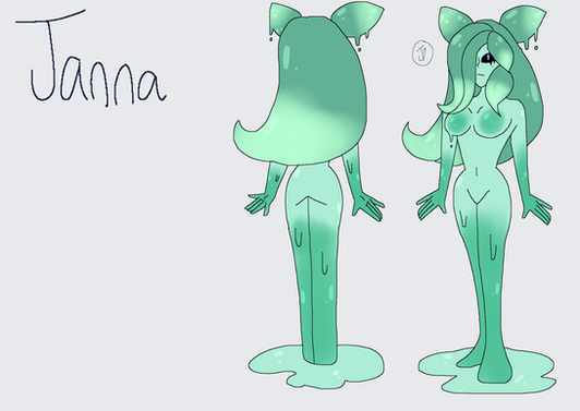I said I wanted to make a slime girl someday. Welp I had a neat idea and ran with it, so I guess it's today.Some species info- So this is Vara, she's some kind of slime alien. Her species (dubbed by most as the Laspi) originally take the form of blobs with little feet and a tail. However they can shape shift, so they are usually seen in all sorts of different shapes. With no vital organs, Laspi can survive in the vacuum of space, and live for a very very long time. This lead to the popular Laspi hobby of "Thruster Hiking" in which a Laspi sits in space until a ship eventually comes by. Their use their tails to grab onto said ship, and sometimes try to find ways to board it.