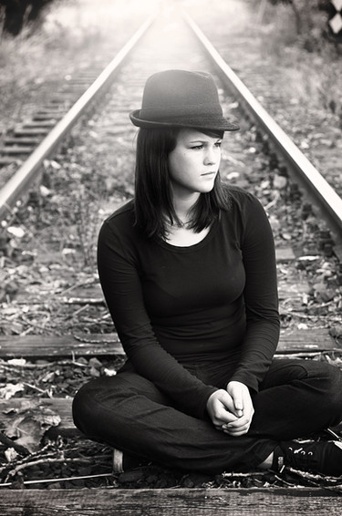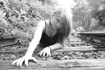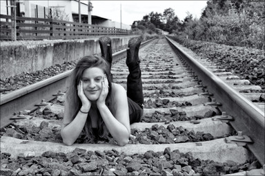 Black and white has a power of its own - I think you use it well here. Railway lines are immediately recognisable and slightly romantic. I like the way you combine them with an inviting face.