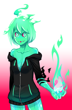 A Ghost character I was working on. I really like how the glow effect came out.She can posses people and change them. If she uses her flames to posses them they will change, but keep their own control.