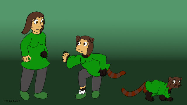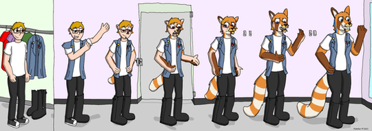 Hear is the laitest Commission froma 4 part TF of a Red Panda Anthro into a Red Panda Legion.