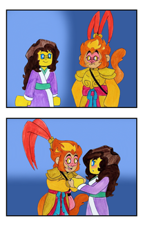 Macaque: "Stay away from Li-mei!!!"Sun Wukong: *sarcastically saying* "Oh come on, you can share her, can't you???"