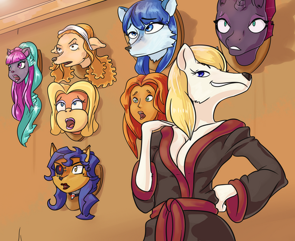 After a long day, it's always great to get home, take off your mask, and lounge in a room full of your other disguises. And that's exactly what Melody does when she gets home, taking off that rubbery mask to finally rest from her time on stage. Although maybe he'll pick up another disguise after, who knows?