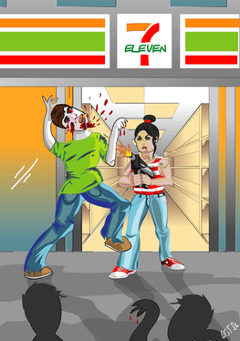 JAJAJA me encanto, "ketchup" derramado por todos lados XD, te quedo genial, me encanta el lineart XD